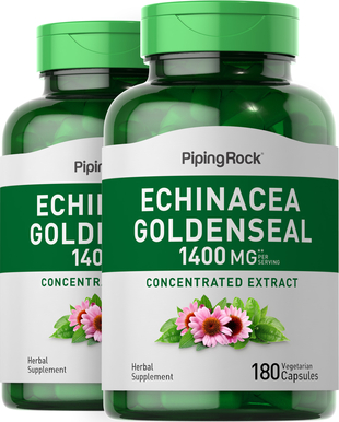 Echinacea Goldenseal Root 2 Bottles X 180 Veg Capsules Benefits Uses Pipingrock Health Products